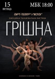 15 листопада 2025 року 18:00 год Глядацька зала Танцювальна вистава «Грішна» від Арт-Театр «Люта» -це стильна, сучасна і приголомшливо відверта вистава про помилки та каяття, про торги із власною совістю, боротьбу з людським осудом та тонку межу між безчестям та … Читати далі