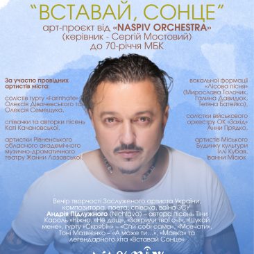 Запрошуємо на новий арт-проєкт Міського Будинку культури та оркестру “Наспів” в рамках святкування 70-річчя МБК. Неймовірний музичний вечір, який вам подарують рівненські артисти, матиме назву “Вставай, сонце” і буде присвячений творчості Заслуженого артиста... Читати далі