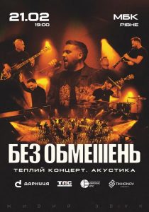 21 лютого 2026 року 19:00 год Глядацька зала Гурт БЕЗ ОБМЕЖЕНЬ повертається з акустичною програмою та зіграє концерти більше ніж у 20-ти містах України. Ексклюзивне звучання хітів й камерна атмосфера – саме таким буде всеукраїнський акустичний тур, який стартує вже … Читати далі